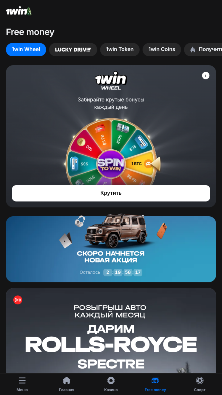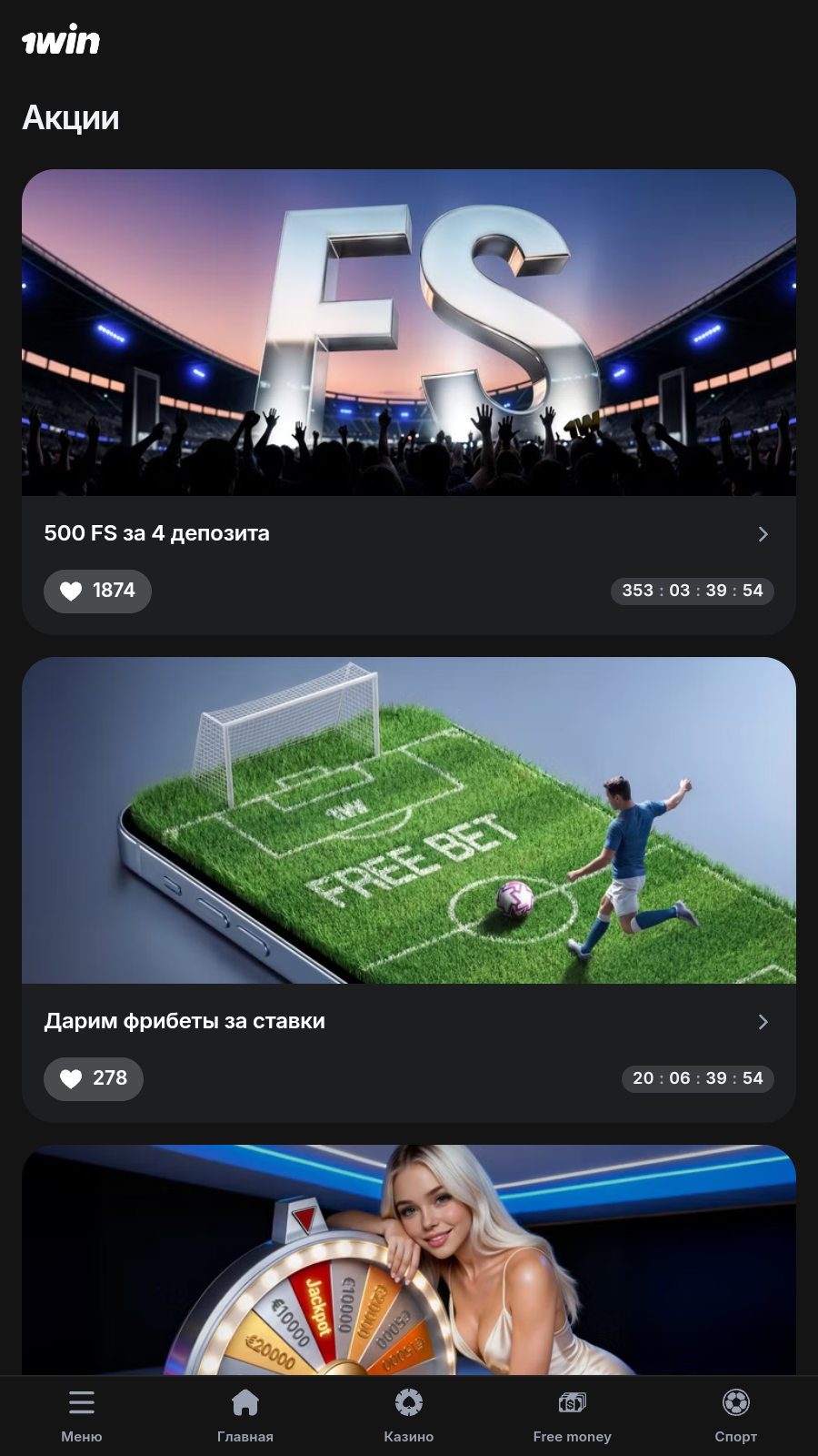 Бонус за установку приложения - получение 200 1win Coins за установку приложения на iOS или Android.