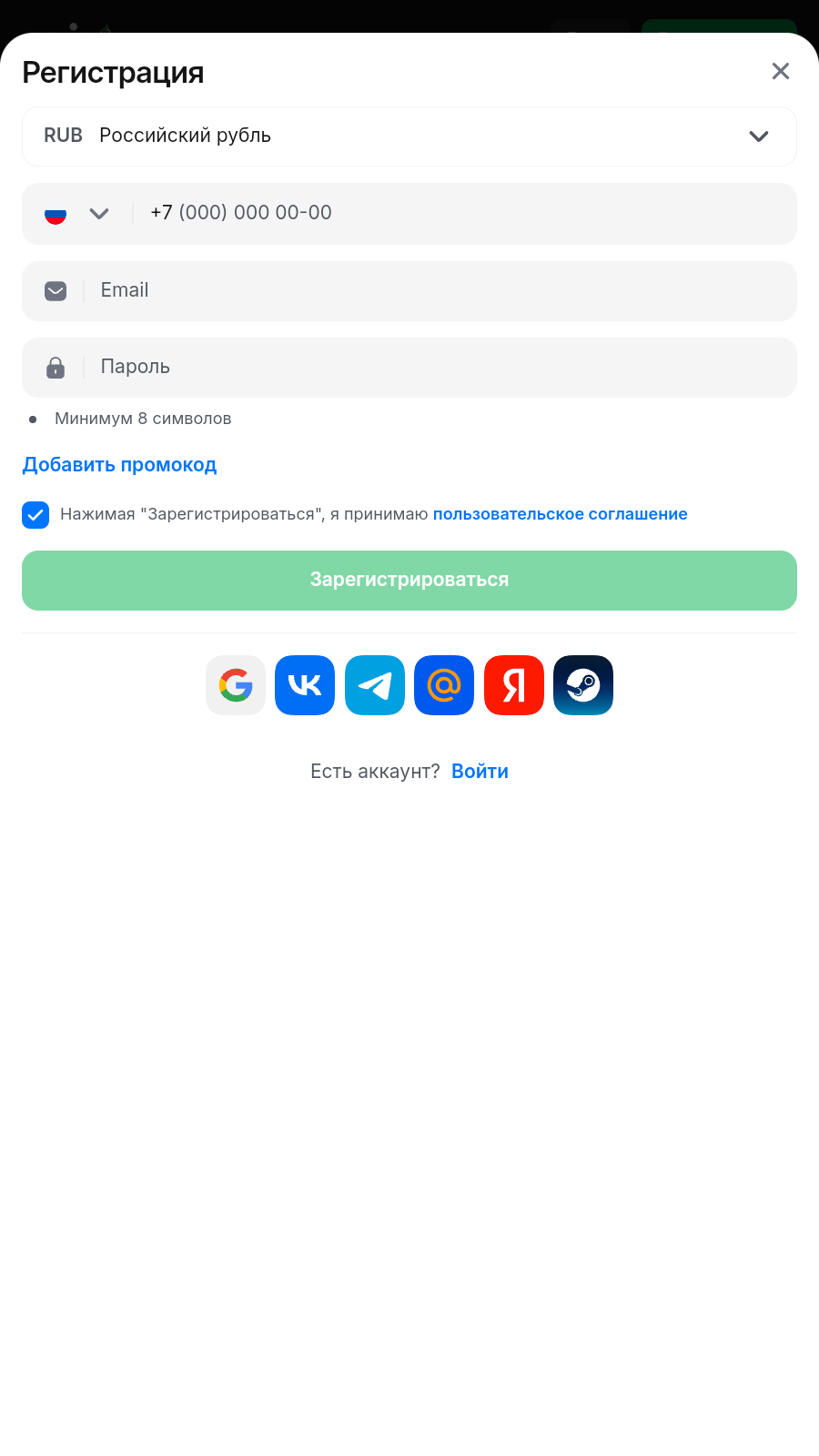 Мобильная версия сайта не требует установки и обновляется автоматически, работает на любом устройстве через браузер, но требует повторной авторизации при каждом входе. В некоторых регионах требует использования VPN или зеркал для доступа к платформе. Скорость загрузки зависит от качества браузера.