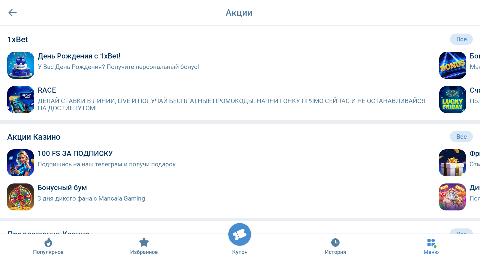 Раздел для любителей казино в приложении предлагает рекордный ассортимент игровых автоматов: до 13 000+ слотов от NetEnt, Microgaming, Play’n GO, Pragmatic Play и 200+ топовых провайдеров и нишевых студий со всего мира, а также содержит эксклюзивные фирменные игры один х бет. Фактическое количество зависит от региона и может меняться со временем. Каталог регулярно пополняется новыми играми и разделен на категории: