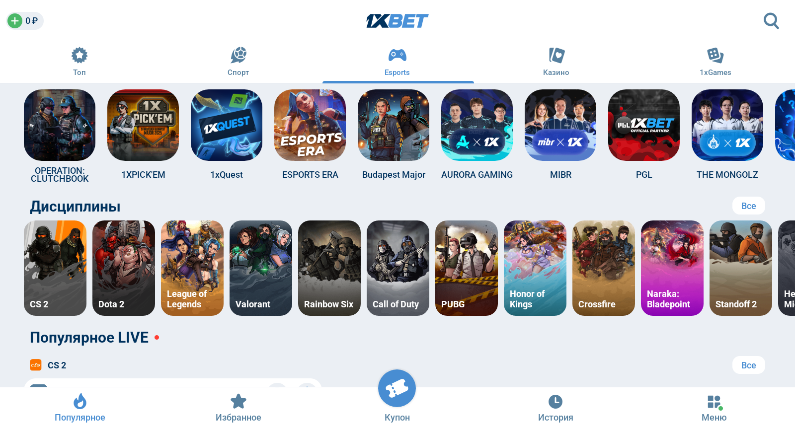 Real - ставки принимаются на реальные киберспортивные матчи по таким дисциплинам, как Dota 2, Valorant, Overwatch, League of Legends, CS 2 и Call of Duty. Доступны пари на крупнейшие чемпионаты: The International, Major-турниры по Counter Strike и множество региональных лиг.