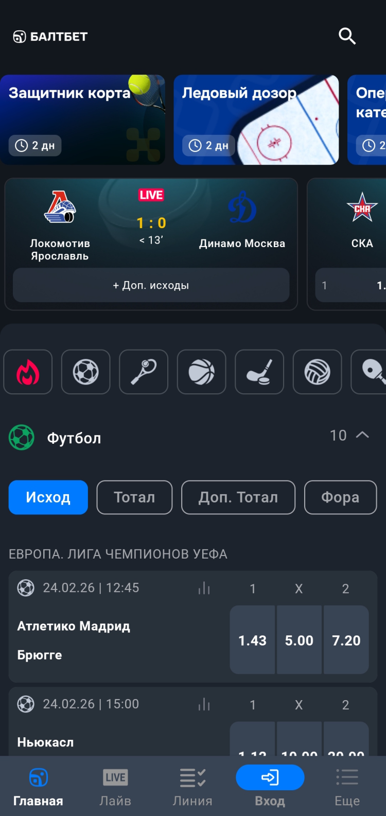 Скачал приложение Балтбет на свой Android и не пожалел! Удобный интерфейс, много событий и линий, быстрое оформление ставок и оперативный вывод выигрышей - все на высшем уровне!