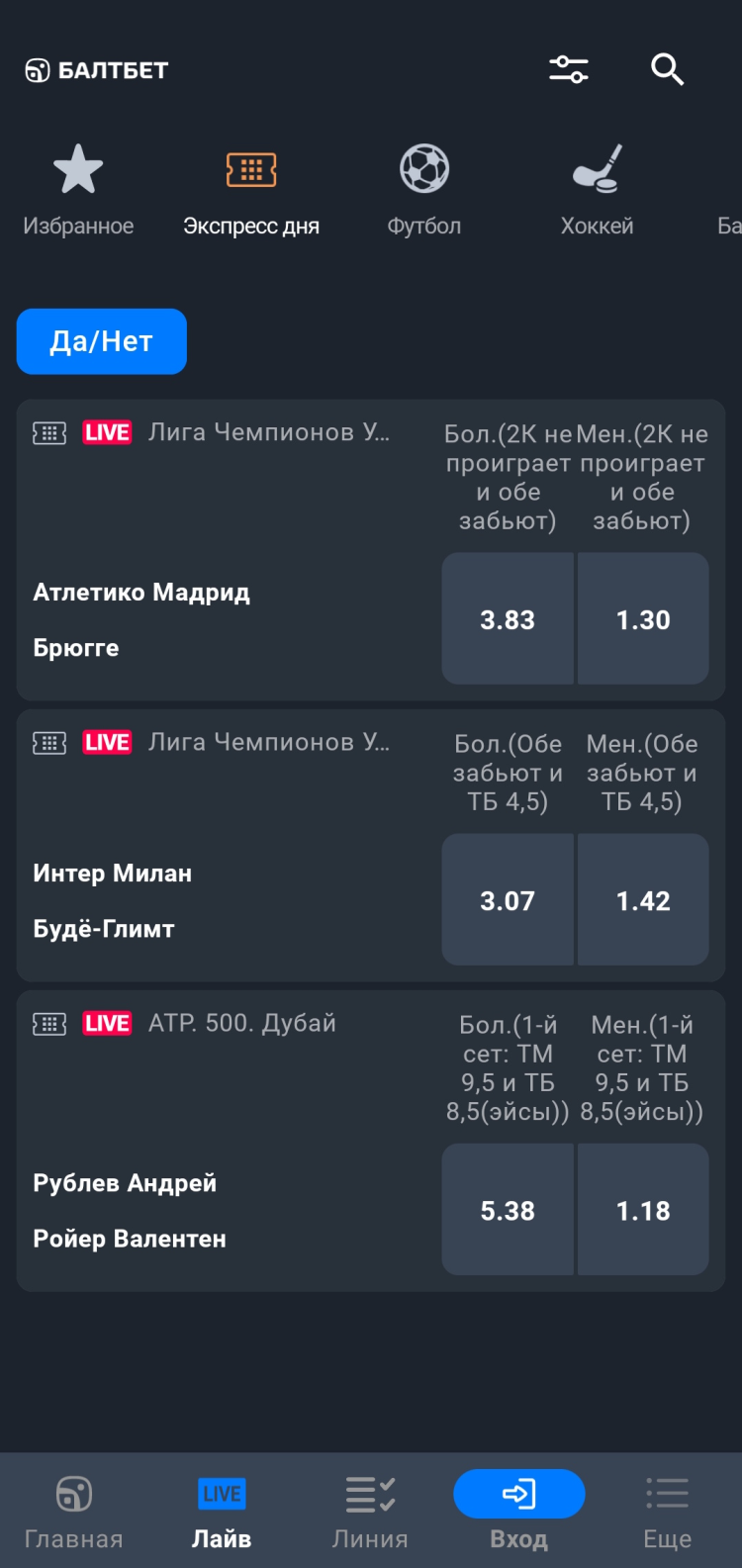 Я давно пользуюсь Балтбетом и не собираюсь менять его на другие приложения. Очень удобный интерфейс, быстрое оформление ставок, много спортивных событий - все просто супер!