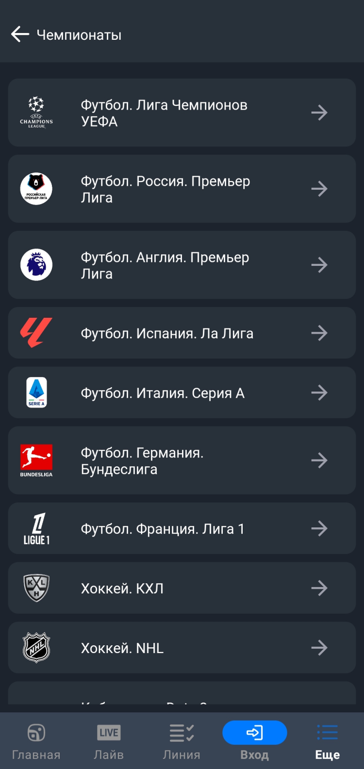 Отличное приложение! Быстрая и стабильная работа, большой выбор событий и линий, удобный интерфейс. Рекомендую!