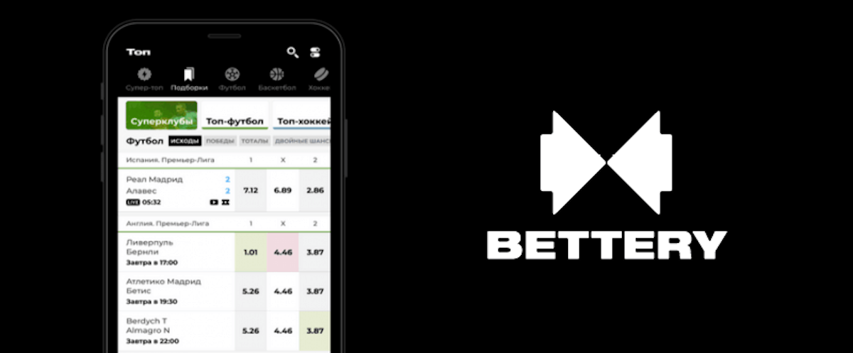 Давайте разберемся, что предлагает мобильное приложение БК Bettery на ос Андроид и iOS. Компания предлагает весь необходимый функционал через сайт бк Bettery или приложение букмекерской конторы. Выбор из 25 видов спорта порадует всех любителей беттинга. Среди них как самые популярные — футбол, хоккей и баскетбол, так и более экзотические наименования. Интерфейс программы очень прост и не потребует подолгу разбираться в нем. Это обеспечивает возможность быстро размещать ставки даже начинающим игрокам. А вишенкой на торте станет раздел со множеством акций и других спецпредложений. Приложение позволяет бонусы и повысить свои шансы на успех.