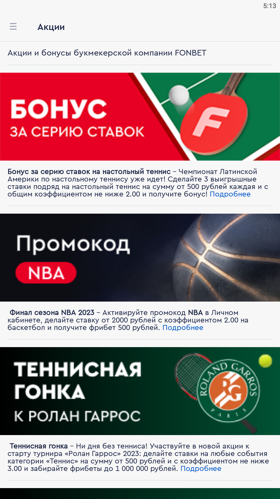 Приложение беттери на Андроид и мобильная версия сайта онлайн-букмекерской конторы прекратили своё существование. Любителям ставок не пришлось тратить время, чтобы обеспечить сохранность финансов и поиск нового партнера для ставок на спортивные матчи. Все счета из Беттери для Андроид были автоматически перенесены в Fonbet, а активные пользователи даже получили приятный бонус в виде 15% бонуса к сумме на балансе у букмекера. А ещё компания дарит бонус в 1000 рублей после подтверждения личности. Пополнять баланс во время знакомства с новым сервисом придется не скоро. В целом, набор возможностей Фонбета ничем не уступает, а в чем-то и превосходит, возможности БК Беттери. Предлагаем бесплатно скачать приложение букмекерской конторы для андроид с нашего сайта и начать зарабатывать на спортивных прогнозах по-новому.