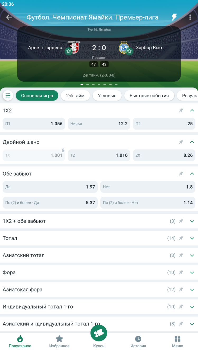 Live - ставки на различные события во время матча, с обновлением коэффициентов в реальном времени.