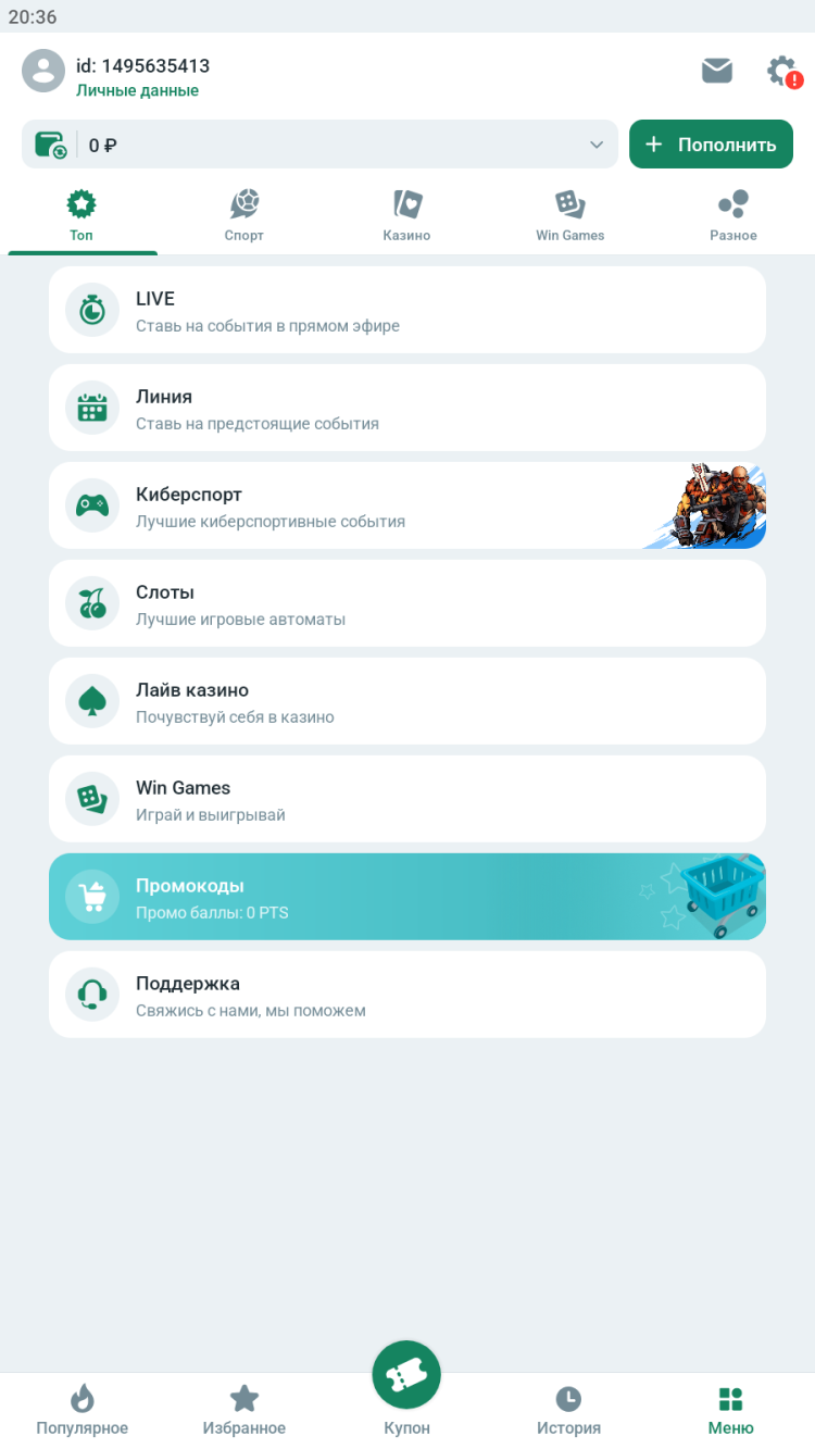 Доступ к ставкам на спорт, казино и мини-играм на одной платформе.