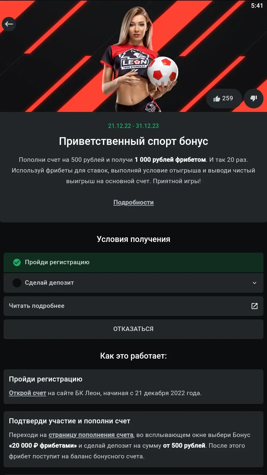 Какие доступны бонусы и акции, если скачать БК Леон на Андроид старую версию