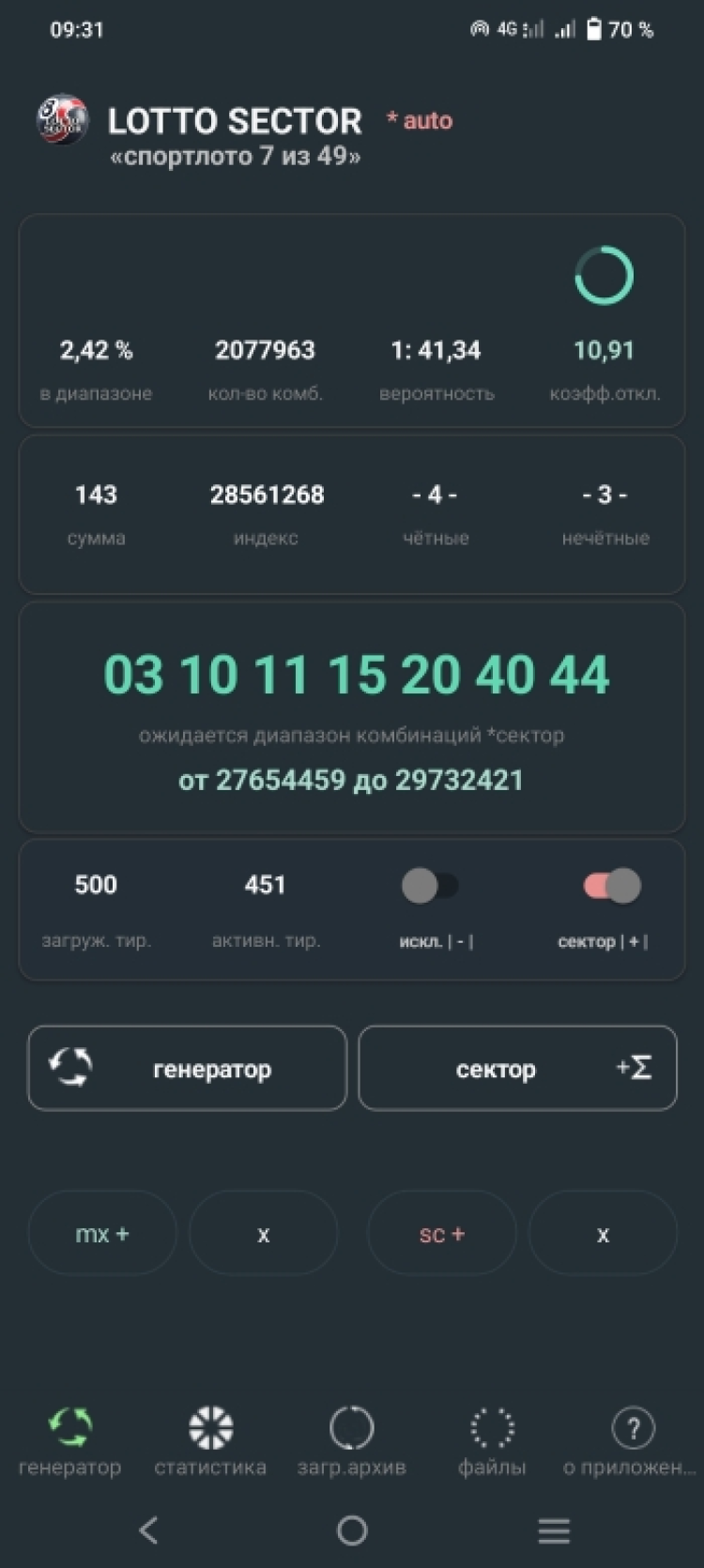 LOTTO SECTOR - стратегический генератор комбинаций для лотереи “Спортлото 7 из 49”