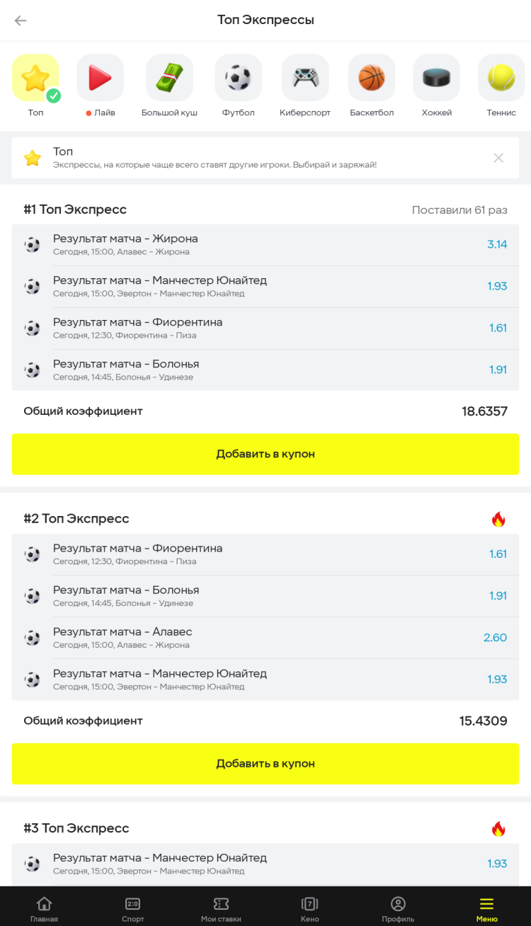 Я долго искал официальную букмекерскую компанию скочал париматч очень справедливый подсчет коэффициентов. Вообщем я не жалею что скачал себе на андроид париматч.