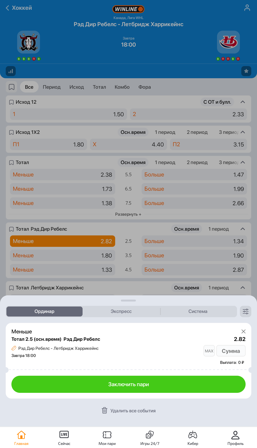 Линия - в этом разделе вы найдете спортивные и киберспортивные события, на которые можно сделать ставки до начала матча.