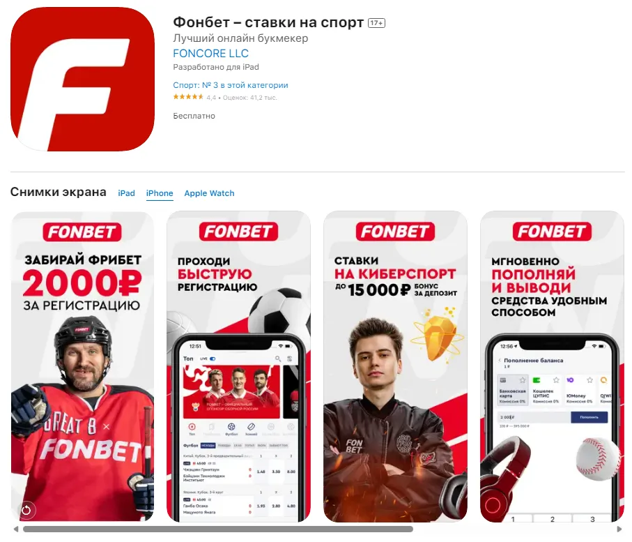 Скачивание и использование приложения Фонбет на iPhone открывает перед вами захватывающий и удобный мир ставок на спорт. Это бесплатное приложение, которое доступно в App Store, предоставляет вам возможность ощутить азарт от ставок на спорт в реальном времени, следя за результатами матчей на вашем смартфоне.