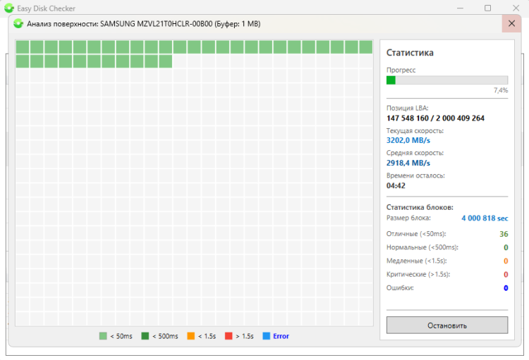 Тест поверхности: Полное сканирование на наличие битых секторов (bad blocks)