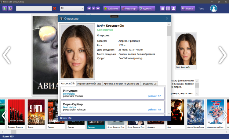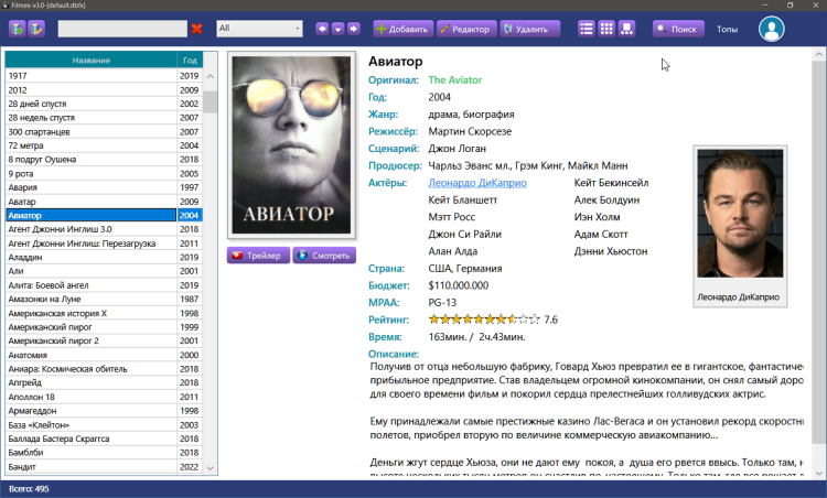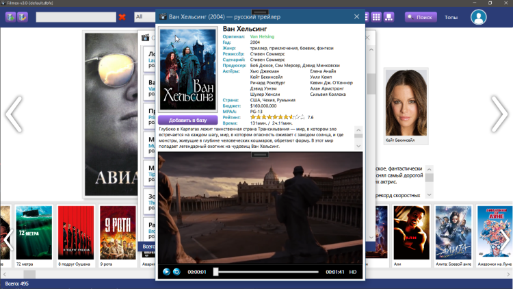 Описания и все дополнительные данные к фильмам программа берёт с сайта Кинопоиск.