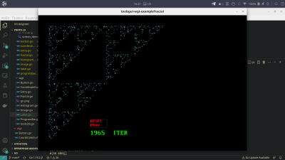 Фрактал Серпинского — программа моделирует построение фрактала «Треугольник Серпинского» с использованием рекурсивного алгоритма. Пользователь может наблюдать, как на экране постепенно формируется сложная геометрическая структура, состоящая из множества уменьшающихся треугольников. Интерфейс включает кнопку «Перезапуск», позволяющую в любой момент начать процесс заново, а также индикатор прогресса, отображающий текущий номер итерации. Это позволяет отслеживать, на каком этапе построения находится фрактал. Программа демонстрирует ключевые свойства фракталов: самоподобие и бесконечную детализацию. Каждая новая итерация добавляет больше деталей, делая изображение сложнее. Такой визуализатор может быть полезен для изучения математических концепций, программирования рекурсивных алгоритмов или просто для эстетического удовольствия.