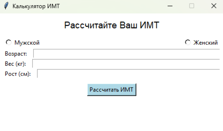 Рассчитайте свой ИМТ, введя вес, возраст, пол и рост.