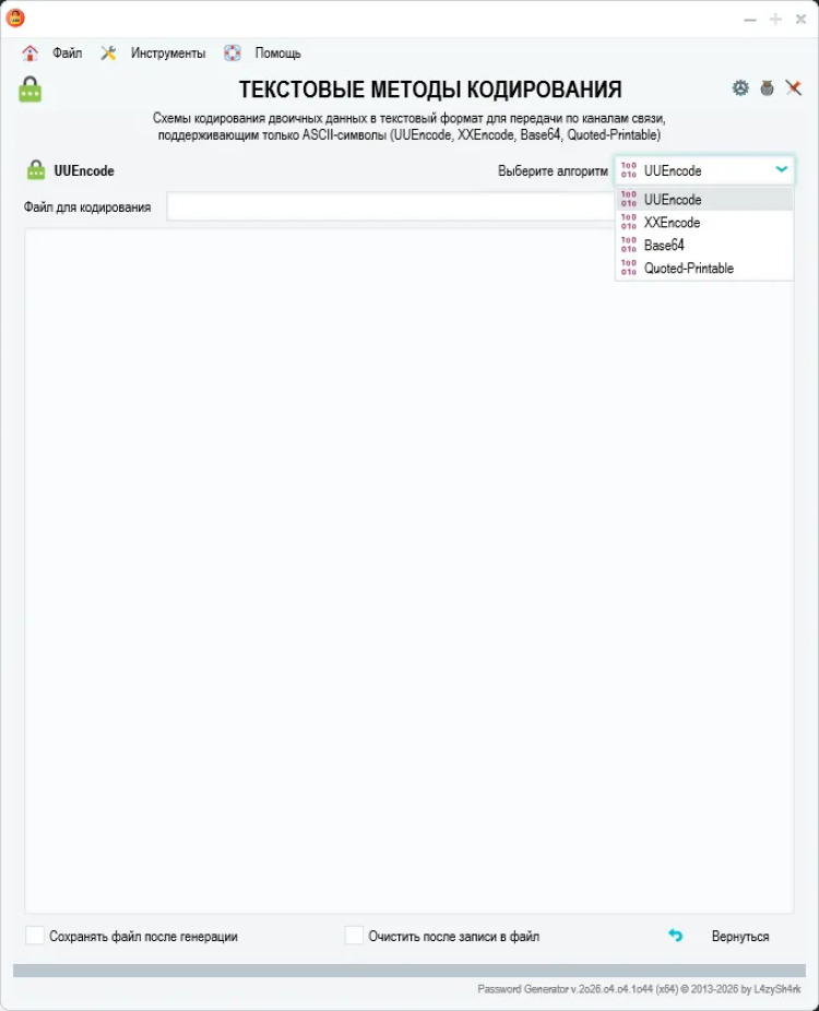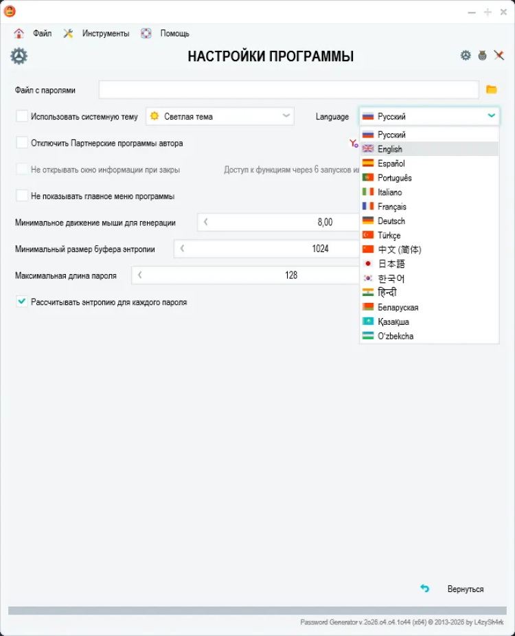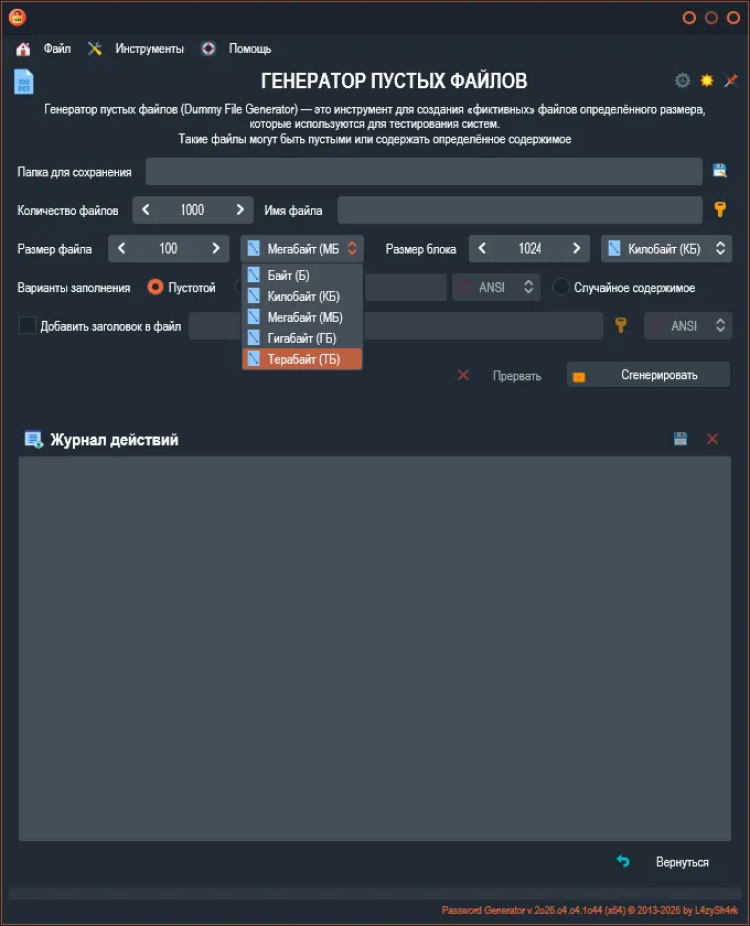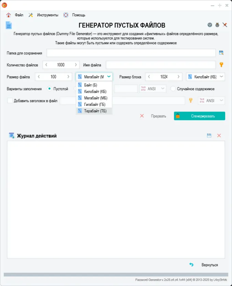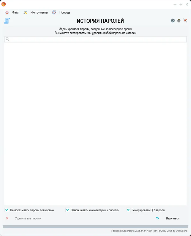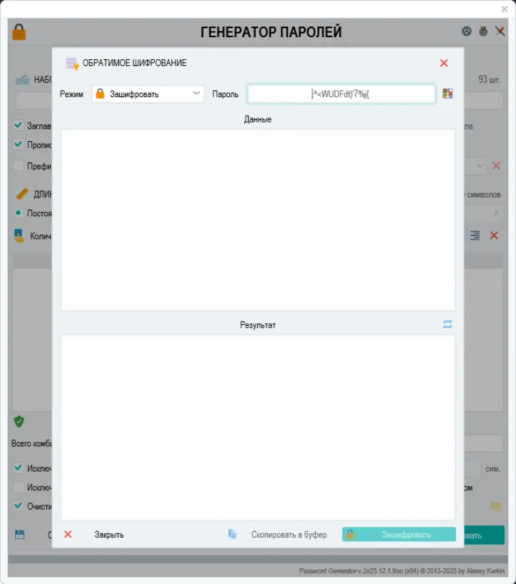 Password Generator - это простой и безопасный инструмент для генерации надежных паролей. Эта программа помогает создавать сложные пароли, состоящие из различных символов, которые могут быть необходимы для защиты ваших учетных записей и личных данных в Интернете.
